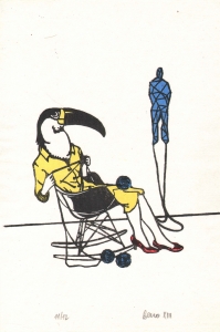 ROCKING TOUCAN 2013 Estampe créée en hommage aux designers Ray et Charles Eames et tirée à partir de matrices gravées sur bois pour la première fois au laser.