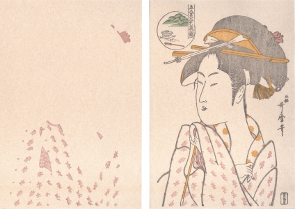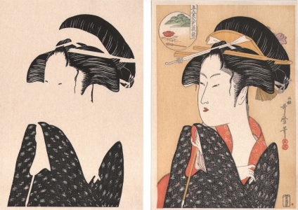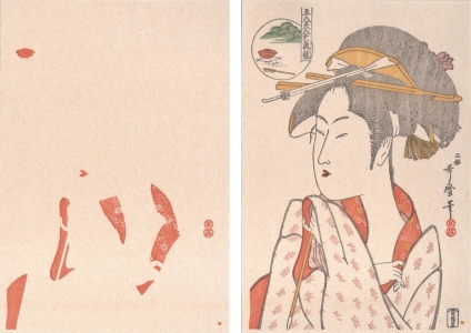 L’estampe est une commande du musée départemental des arts asiatiques de Nice dans le cadre de l’exposition itinérante Impressions féminines La gravure produite pour cet évènement réinterprète le Portrait de Yatsuyama Hiranoya de Kitagawa Utamaro (1753-1806) datant de 1795-1796 conservé au musée. L’œuvre prend la forme d’une installation à caractère didactique composée des matrices en bois, des différentes étapes d’impression et des échantillons de pigments. L’exposition est présentée dans 7 médiathèques des Alpes-Maritimes. Les 15 oeuvres sélectionnées donne à voir la diversité de la représentation féminine dans l’estampe japonaise durant l’époque d’Edo (1603-1868) et sous l’ère Meiji (1868-1912).