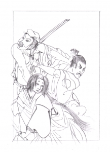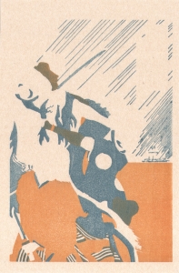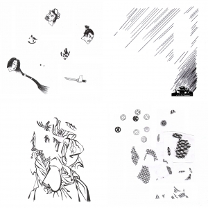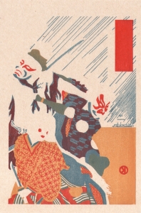 Cette gravure sur bois est conçue spécialement pour le coffret collector du film RASHÔMON d’Akira Kurosawa en version restaurée éditée par Potemkine. L’esthétique de la gravure puise ses sources dans l’imagerie des acteurs de théâtre de la fin du XVIIIe siècle au Japon. Les estampes illustraient les plus célèbres scènes du répertoire Kabuki, ses héros, et également ses acteurs.